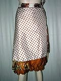 Fancy sari wrap skirts are multiwear 2 layered wrap skirts. These skirts are reversible and unique. They can be worn in many different ways.Our unique sari wrap skirts are fabricated from recycled vintage silk saris from India.Two layered, they offer an exotic array of possibilities for wear. Simply by reversing them or arranging their fabric layers, you can create distinctive dresses, skirts, tops, and wraps suitable for any occasion. And, they make an ideal travel item as beach wear or resort wear. Different patterns and colors play out in vibrancy in each drape, swirl, and motion of the sari skirt . Enjoy ,explore and have fun with our unique eco-friendly garments! Features: This is a beautiful Sepia Brow white Red Dot Printed skirt,made in India,There are two layers here each with a funky print and totally different style and it's totally reversible., The latest magical multiwear vintage silk saree wrap skirts at a very suitable essential for your beautiful days, This skirt can be easily worn in many ways .....This cute skirt is a unique and original piece,one of a kind,side closure, self-tie closure,its a perfect apparel for evry single lady,, Length 28 inches,Waist open 45 inches,Umbrella cut,drawstring., These wraps/skirts are made from new poly silk saris.Instruction: hand wash cold ,cool iron . more...