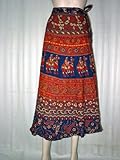 A great looking Wrap-around Skirt-Skirts that are not stitched from one side and are wrapped and secured around the waistline- the wrap around skirts- are enormously famous among the Indian women. These skirts are heavy cotton hand printed,florcent type of color.many more designs of Camel and peacocks are there. Features: The Cobalt blue cotton camel print Wrap Around Skirts with eye-catching Animal print creates a Spectacular designs., Fabric : 100% Cotton.Color:4(Cobalt Blue,Red,Tangerine,white)., These long Wrap skirts look elegant and give out a style statement as these are in step with the latest fashion trends., Length 36 inches, Waist open 40 inches., Care Instructions: Hand wash ONLY. more...