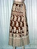 Party Wear Newage Skirts White Brown Color Paisley Print Womens Cotton Wrap Skirts India 40" Long Free Shipping from Mogul Interior