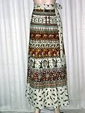 A great looking cotton wrap around skirts with Elephant and Dear print. This wraparound is adorn with beautiful floral print, which gives it an elegant look. It is in pure cotton and in White color. Floor length & vintage style makes this wraparound different with others! and gives the cool look. Features: White colored cotton wrap skirt with eye-catching Dear and elephant print creates a tribal impression., Fabric:100% Cotton. Color:4(White,Tangerine,Maroon,Green)., Length 40 inches, Waist open 50 inches., Care Instructions: Hand wash ONLY., These long skirts look elegant and give out a style statement as these are in step with the latest fashion trends. more...