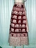 Birthday Gift- White Maroon Elephant Print Cotton Wrap Around Skirts India 40" Long Free Shipping from Mogul Interior