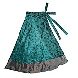 This Magic Skirt by Jedzebel is a two layer silk wrap skirt that can be worn as a skirt, dress, and top. It is approximately 48 inches wide, one size fits most. It is approximately 34 inches long. Made from vintage silk sari fabric, every piece is one of a kind. For this item we can offer the EXACT SAME PRINT as the photo you see here. What you see is what you get. Included is a pamphlet detailing the many ways to wear the Magic Skirt. Compare this skirt to other brands. We offer the best selection of prints and colors because we have been bringing these silk skirts back from India for years. We work directly with the small family tailoring groups in a Indian village to bring you an authentic garment that is fair trade made and eco-friendly. Our recycled fabric (silk saris) guarantees a smaller environmental footprint than a garment made from new fabric. The Magic Skirt - eco, fashionable, lightweight, and of course, beautiful! Features: BEST SELLER - This Magic Skirt can be a dress and top as well as a traditional two layer umbrella wrap skirt., Long wrap skirt - approx 34 inches long, One size fits most, All Jedzebel clothing is made under Fair Trade practices. Made from vintage India silk blend saris - many colors/prints to choose from., Jedzebel has been working in the villages of India for 16 years making silk sari garments. These eco-friendly fabrics are better for the environment! more...