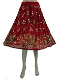 Perfect long skirt adds to your spring and summer wardrobe. A long time favorite is back! Our classic rayon boho skirt is perfect for all long and short kurtis. A fun & fashionable skirt by Mogul Interior! This crinkle skirt offers a bohemian style and elastic waistline. Skirt is stylish, easy to wear, and is one of this season's hottest looks! and You feel casual in all time. Features: Gorgeous long Bohemian Red Skirt decorated with Green Golden embroidered and small silver sequins., Spectacular design and color. The very best in quality and design. Designer styles from India., Elasticized waistband with a drawstring., Measurements:Length: 28" Inches, Waist Non Stretched: 26" Inches, After Stretching: 38" Inches,Bottom Circumference upto 74", Care Instructions: Hand wash only. Fabric is rayon. more...