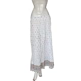 Early Indian literature, speaks of the bhairnivasni, a skirt like garment, which evolved from the antariya, a simple tube shaped garment. This was stitched on one side, gathered and held at the waist by a girdle. Women wore it as a lower garment. It later evolved into a skirt with a drawstring called the ghaghri made from five and a half meters of fabric. The skirt in India is known by many different names, depending on the regional style, the most popular, by far, being the ghaghra.It was the flare that made the ghaghra such a sumptuous garment and one so captivating that it was celebrated both in poetry and art. The ghaghra is really a long skirt, which has the construction of a simple gathered skirt or a flared gored skirt. It covers the legs fully or partially, depending on the norms of propriety among different ethnic groups, although a long ghaghra usually relates to more puritanical modesty. Another term used was the lehenga, a compound of the Sanskrit words lanka (waist) and anga (body or limb). The lehenga is generally associated with a panelled skirt that is narrower than the ghaghra. However, there are no rigid definitions and the terms have found more generic usages. Features: Casual Skirt in cotton from India. (skt393), Waist 34 inches Length 36 inches , elasticated, For outdoor casual wear, Hand block printed more...