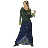 Denim & Green Patchwork - Long Ladies Skirt from Old Glory