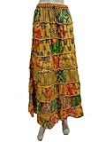A fun & fashionable skirt by Mogul Interior! This gorgeous cotton offers a bohemian style and waistline drawstring. Skirt is stylish, easy to wear, and is one of this season's hottest looks! and You feel casual in all time. Features: This Hippie skirt made up of patchwork tiers constructed from a wide variety of recycled, new, vintage cotton prints in yellow., This bohemian ethnic patchwork hippy skirt/dress, with elasticated waist., Gorgeous color bring you an aura of exotic India., Size : Length 40 inches, waist-non Stretched-24 inch, up to Stretchable 36 inch,bottom line-115" inch with adjustable drawstring., Care Instructions: Hand wash ONLY with drip dry. more...